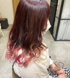 カシスブラウンからの裾をピンクに❣️