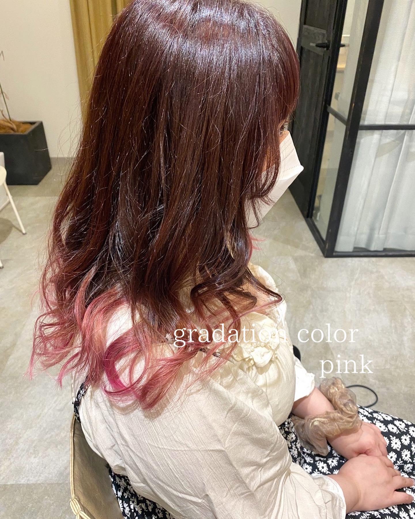 全体ピンク系のカラーで毛先にかけてグラデーションでピンクに💗