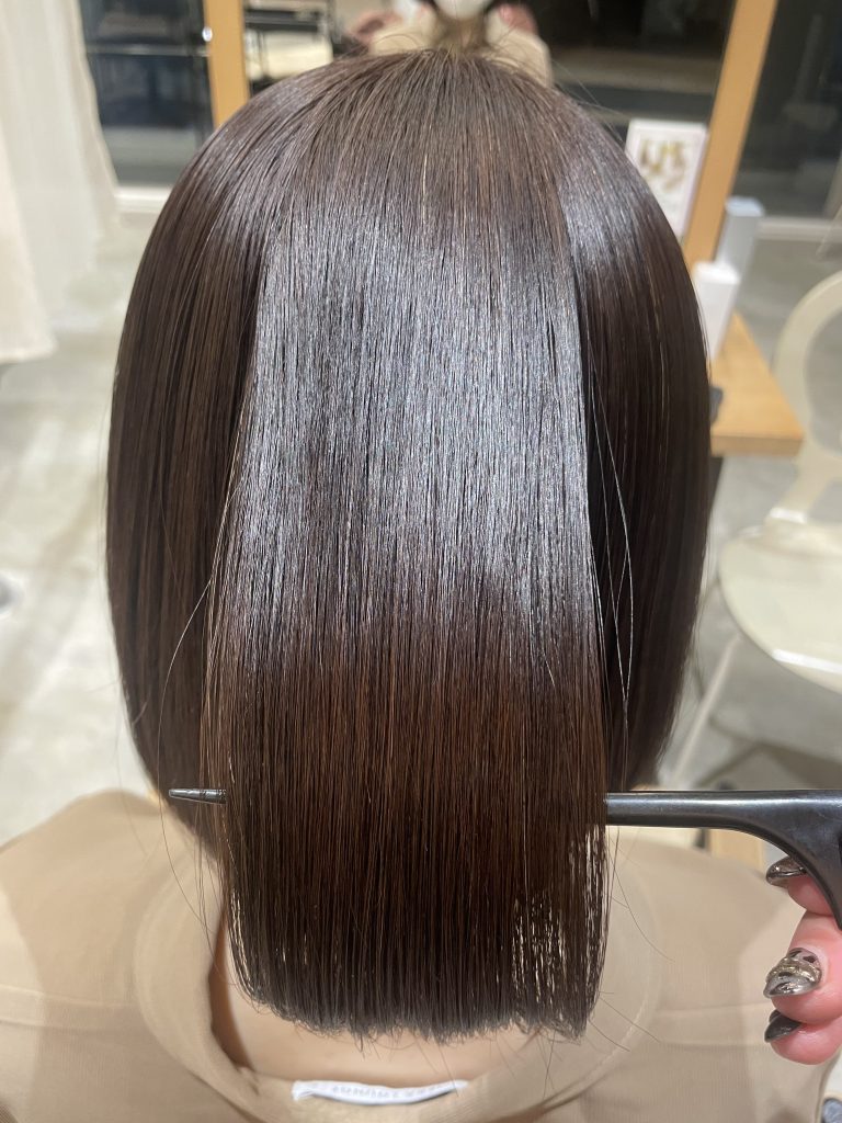 そんな時期におすすめのナチュラルブラウンの艶ボブです! 髪質改善と癖を伸ばせるトリートメントとカラーを組み合わせてつやつやのボブになりました! 新年度も始まるのでボブにイメチェンもオススメですよ♪