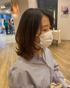 かきあげになるよう前髪パーマしています♪
